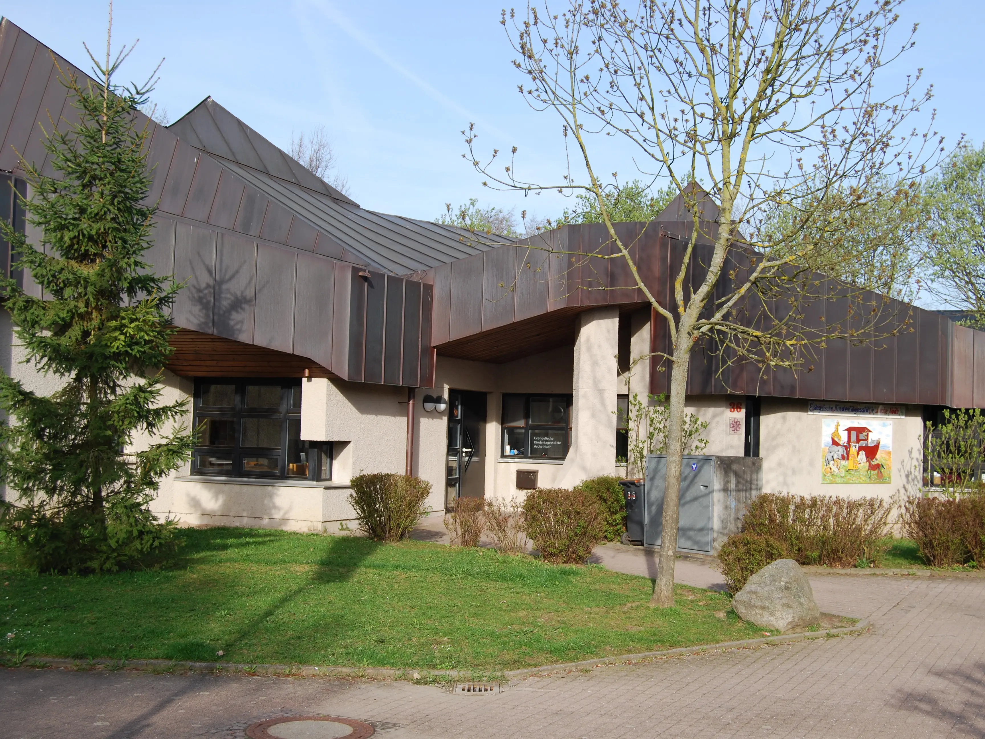 Kita Arche NoahAuf dem Gelände des Ökumenischen Gemeindezentrums (ÖGZ) in Kranichstein befindet sich eine Kindertagesstätte mit 66 Plätzen und Betreuungszeiten zwischen 7 und 17 Uhr.