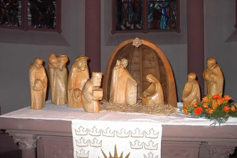 In den 60er Jahren hat der Bildhauer Klarmann aus Kelkheim/Taunus die Krippenfiguren für die Martinskirche geschnitzt. In 2012 schnitzte er noch den Stall dazu.